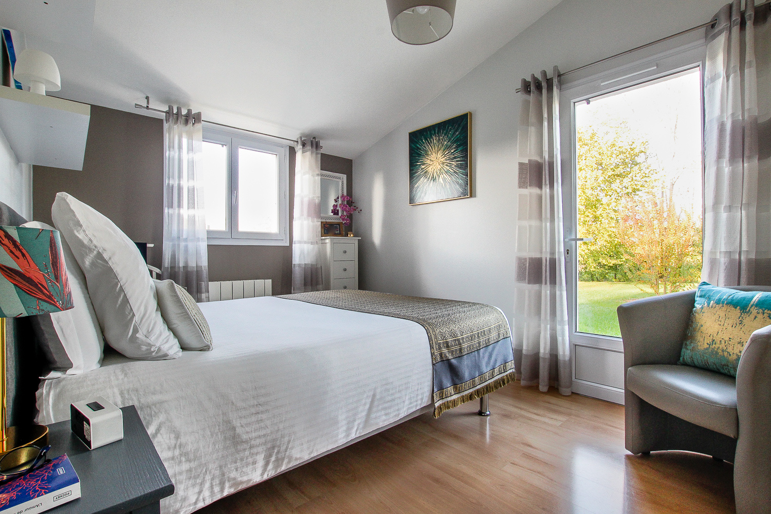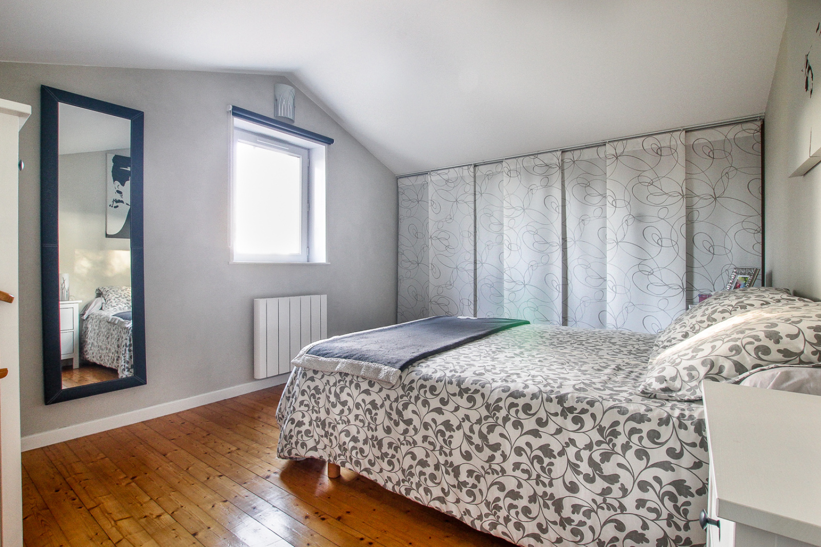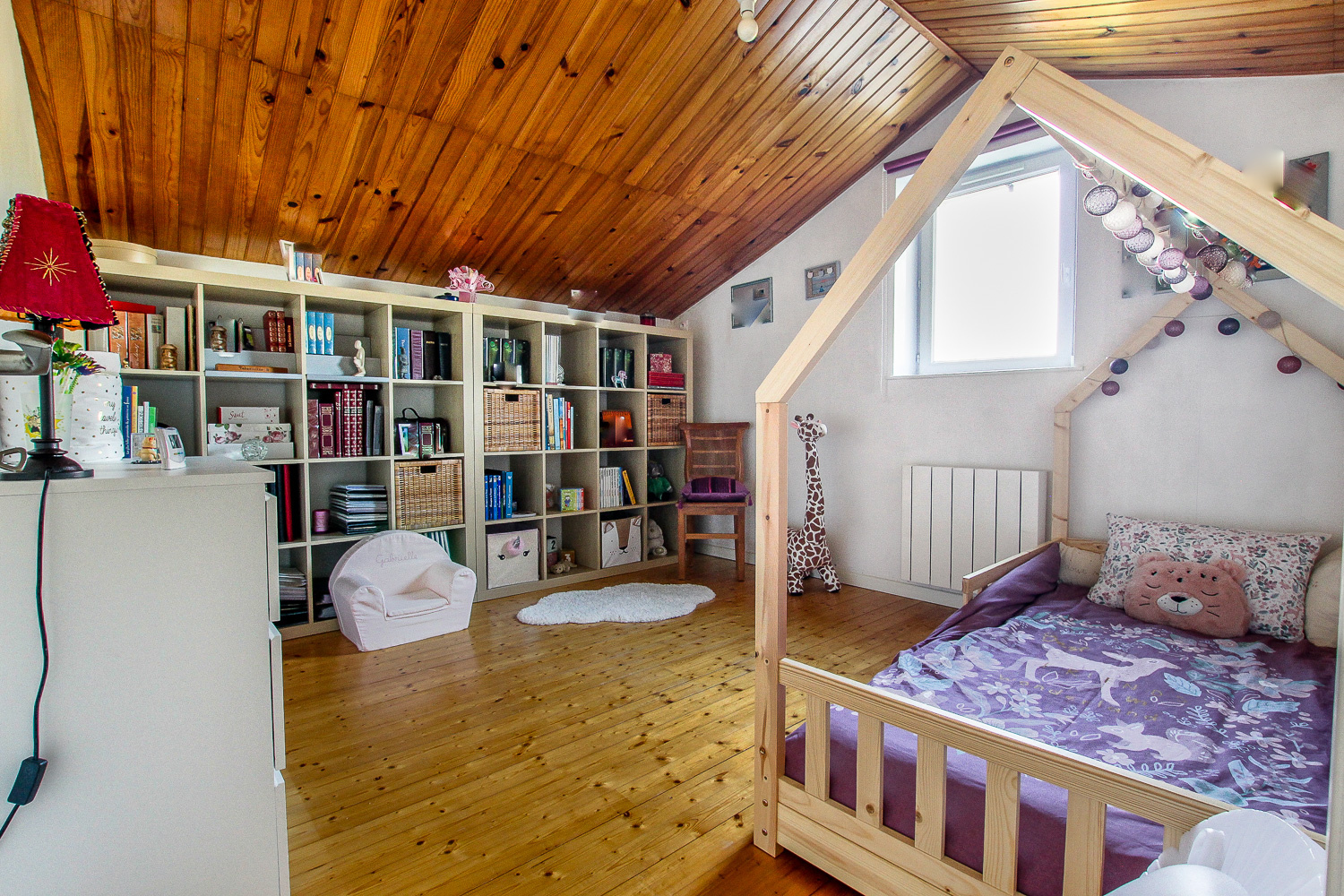 L'étage quant à lui est articulé autour d'un palier central desservant les deux autres grandes chambres chacune avec rangements.